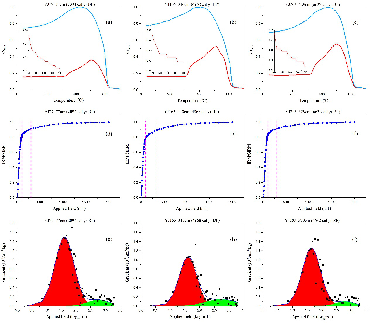 图2 YJ Core岩芯沉积物中代表性样品磁性矿物特性分析