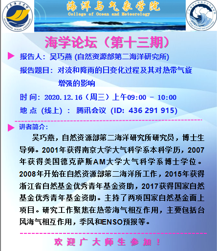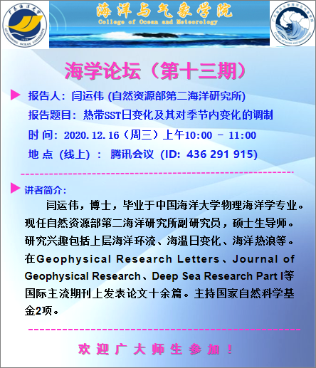 中国科学院海洋研究所侯一筠研究员应邀作学术讲座(预告)