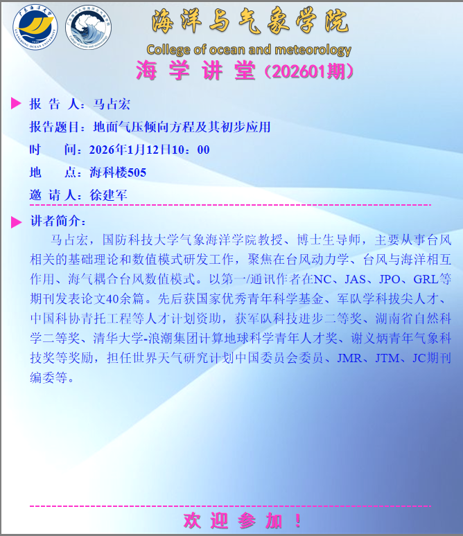【学术会议通知】独播库tv “海学讲堂”(202601期)