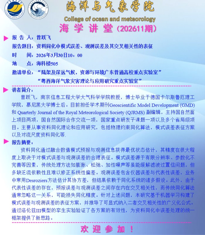 【学术会议通知】独播库tv “海学讲堂”(202611期)