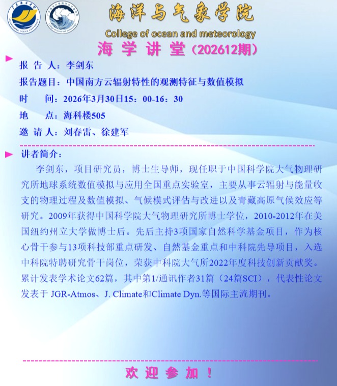 【学术会议通知】独播库tv “海学讲堂”(202612期)