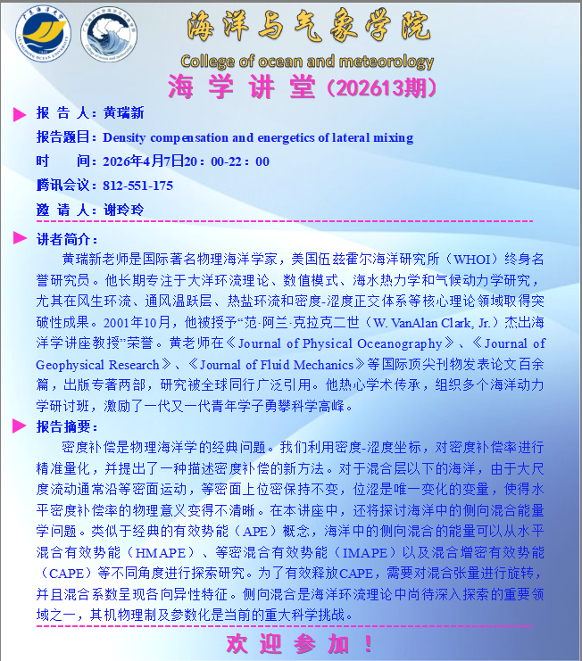【学术会议通知】独播库tv “海学讲堂”(202613期)