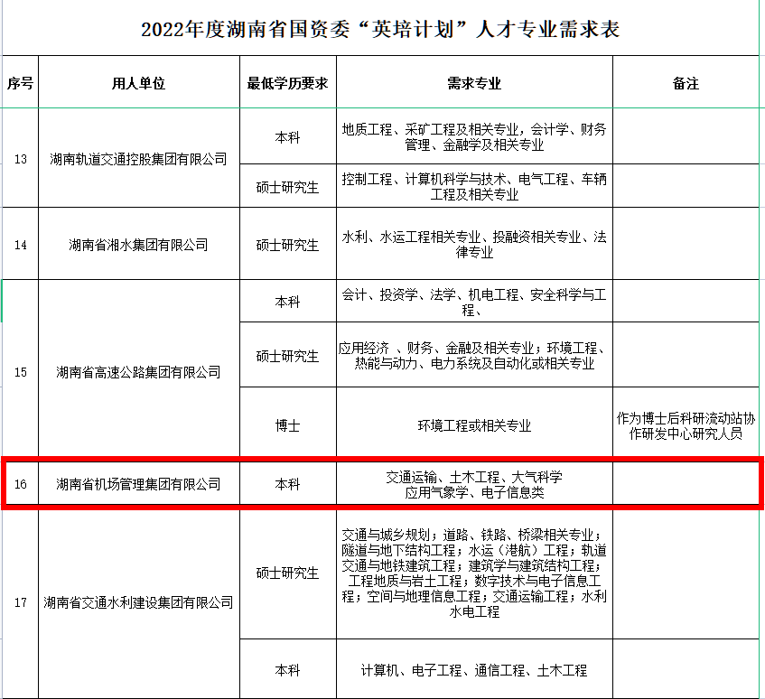 2022湖南省国资委“英培计划”人才选拔公告(湖南机场集团含气象)