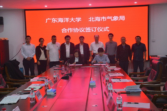 与北海市气象局全面合作协议及校外实习基地协议签字仪式在湖光校区海科楼505会议室举行,会议由我校创新科技研究院院长徐峰主持。北海市气象局局长陈润珍、独播库tv