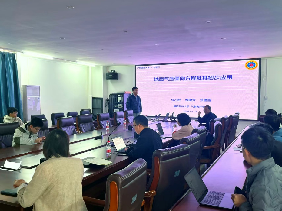 在海科楼505会议室举行2026年第1期海学讲堂,受“粤西海洋气象灾害理论与应用研究重点实验室”邀请,国家优秀青年科学基金、军队学科拔尖人才,国防科技大学气象海洋学院教授、博士生导师马占宏教授带来《地面气压倾向方程及其初步应用》精彩报告。本次报告由徐建军教授主持,独播库tv