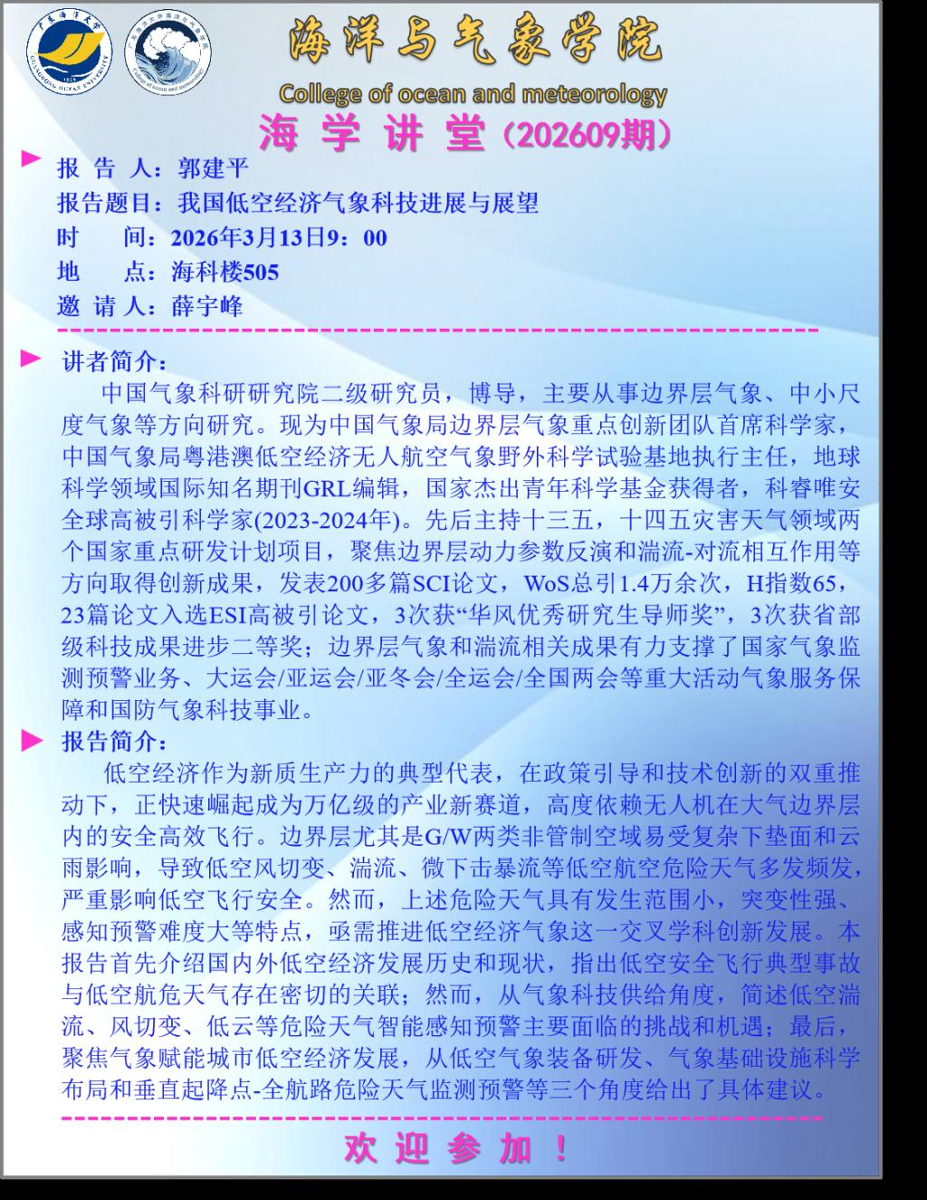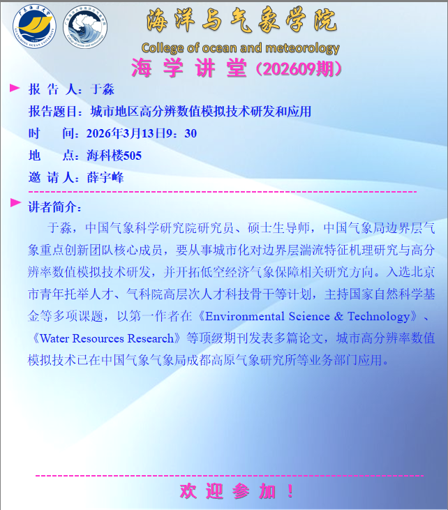 【学术会议通知】独播库tv “海学讲堂”(202609期)