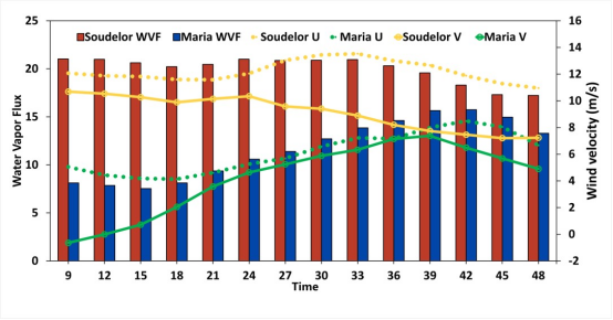 图5. 台风迁移路径对近海水动力过程的影响。
