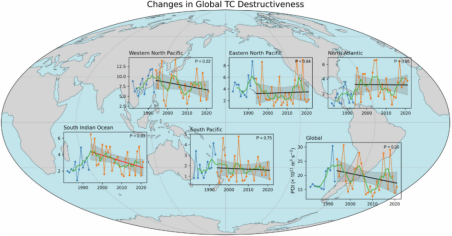 热带气旋活动往往会导致许多不利影响,评估其破坏性是一个重要的科学问题。本研究通过能量消散指数(PDI)分析了全球热带气旋破坏性变化,发现大多数海盆中没有明显的趋势,但自1994年以来,南印度洋海盆的能量消散指数显著下降,几乎完全归因于该海盆中热带气旋频率和持续时间的减少。热带气旋频率的减少受到大气稳定性增强的影响,而热带气旋持续时间的缩短则可归因于热带气旋位置的变化。此外,仅在南印度洋(即马斯克林高压)观测到副热带高压的减弱,这也与热带气旋破坏性的下降相关。这些发现为评估未来热带气旋的破坏潜力提供了重要的科学依据。