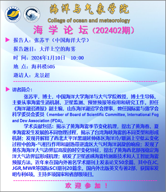 【学术会议通知】海学论坛 2024 01期
