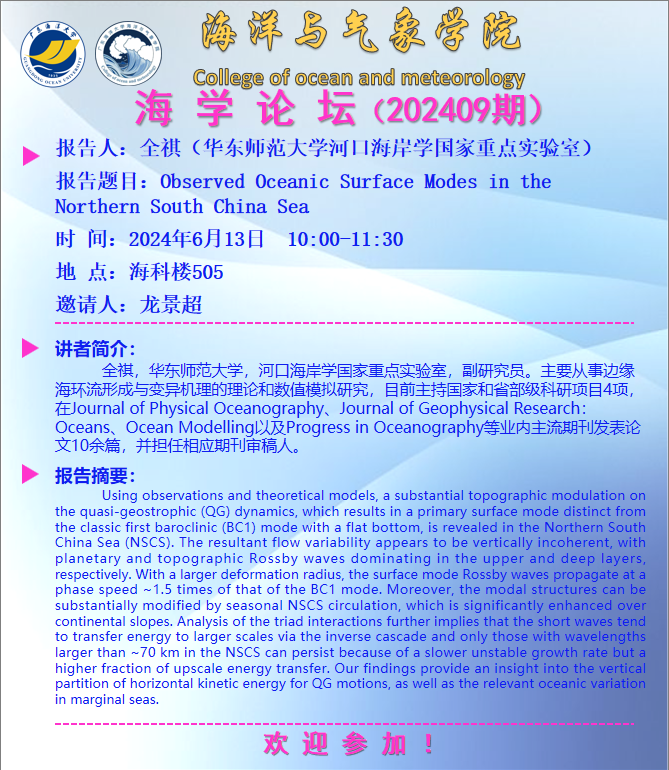 【学术会议通知】海学论坛 2024 07期