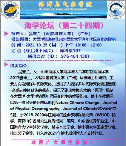 【学术会议通知】海学论坛(二十四期)