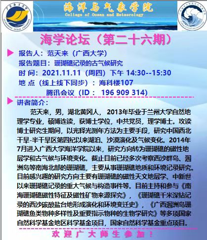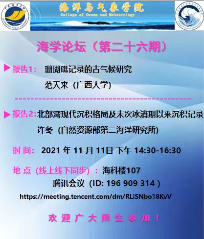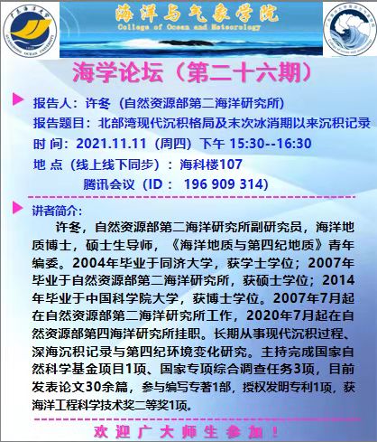 【学术会议通知】海学论坛(二十六期)