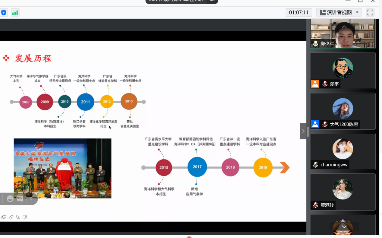上午汇报人员大多是来自国内高校如厦门大学、浙江海洋大学、独播库tv