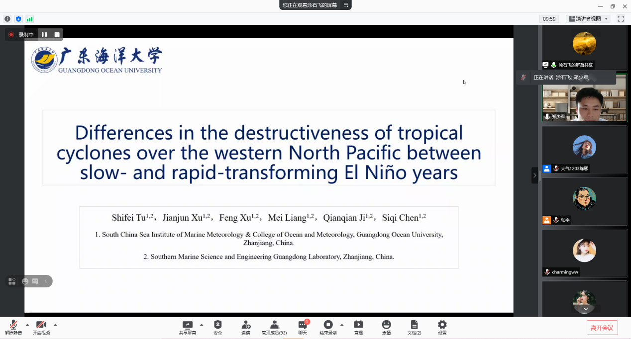 2021年海洋科学青年创新论坛》于早上九点准时开始,参会人员100余人次,其中包括国内外高校及相关科研机构的本科、硕士与博士,以及学术声誉卓越的资深专家出席论坛,所有参会人员就汇报主题展开相关讨论。本次会议聚焦海洋科学相关热点问题,旨在培养青年科学家们发现问题、解决问题的创新精神及实践能力,进而加强学术沟通、学术交流。
